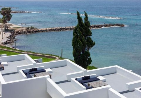 Стилният и модерен хотел е морски курорт. Разположен сред тропически градини на 5 минути пеша от пристанище Пафос. Хотелът предлага безплатен Wi-Fi, четири плувни басейна и СПА център. На разположение са също сауна и фитнес зала. Спа центърът на хотела предлага холистични процедури и масажи. Просторните стаи на хотела са оборудвани с климатик, сейф, минибар и сателитна телевизия. Стаите са с френски прозорци и тераса или балкон с изглед към градините и Средиземно море. Ресторантът на хотела сервира закуска на шведска маса, последвана от кипърска и международна кухня. В хотела има общо 4 ресторанта. Хотелът се намира в близост до летището и голф игрищата. Осигурен е безплатен паркинг.