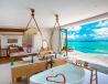 Вили на колони над океана (245 м²) със сламен покрив, частен инфинити басейн (42 м²), просторна слънчева тераса с люлка, шезлонги и директен достъп до лагуната и рифа.